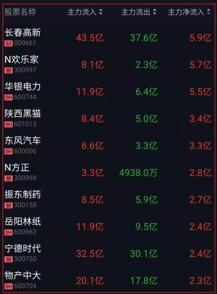 资金净流入十大人气热股: