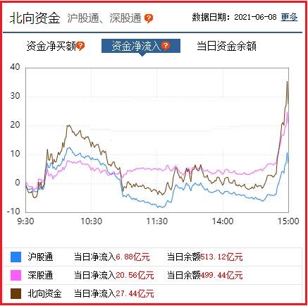 截至收盘: 北向资金净流入27.44亿元,其中沪股通资金净流入6.88亿元,深股通资金净流入20.56亿元。