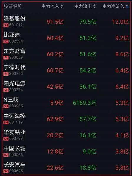资金净流入十大人气热股: