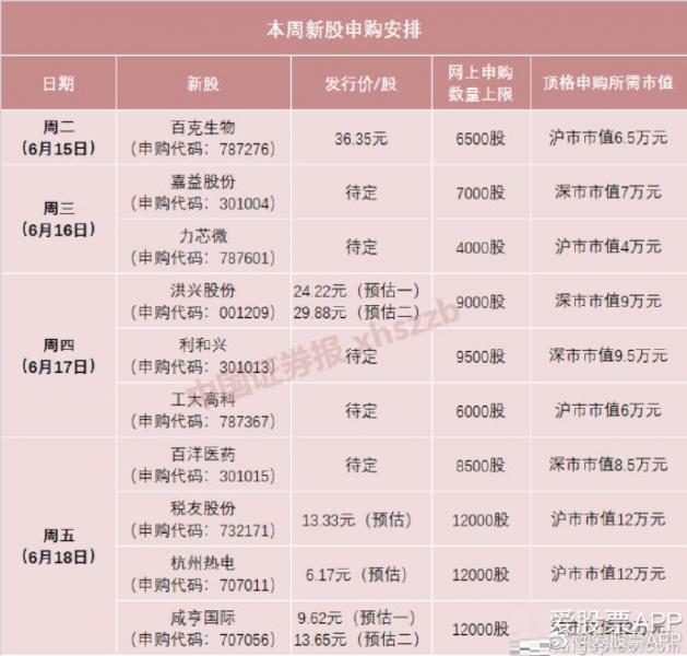 科创板新股皓元医药,上市首日大涨382.27%,中一签可赚12.42万元;“功能饮料第一股”东鹏饮料,上市后已连收12个一字涨停板,中一签可赚14.38万元。根据新股发行安排,本周A股将有10只新股申购,包括主板4只、科创板3只、创业板3只。其中,周二的百克生物和周三的力芯微,都具有“肉签”潜质。此外,爱玛科技将于周二在沪市主板挂牌上市,其表现也值得期待。