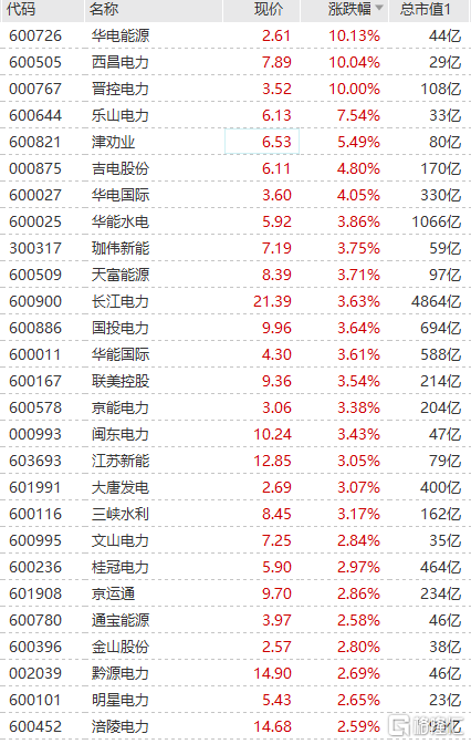 电力板块大幅走高,华电能源、西昌电力、晋控电力涨停,乐山电力涨超7%,吉电股份、华电国际、华能水电、长江电力等纷纷跟涨。消息面上,国家发改委透露,“按照进一步深化电价市场化改革要求,下一步要完善居民阶梯电价制度,逐步缓解电价交叉补贴,使电力价格更好地反映供电成本,还原电力的商品属性,形成更加充分反映用电成本、供求关系和资源稀缺程度的居民电价机制。”