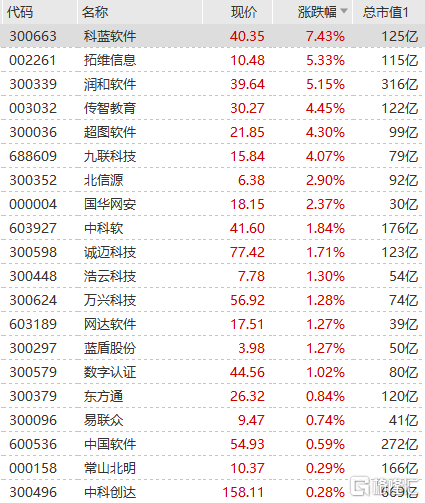 华为鸿蒙概念板块午后逆势上扬,科蓝软件拉升涨超7%,拓维信息、润和软件涨超5%,传智教育、超图软件、九联科技等纷纷拉升。