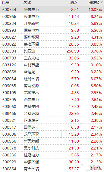 碳中和板块再度活跃,华银电力拉升触板,长源电力大涨超8%,开尔新材、深圳能源、雪迪龙、中材节能等快速冲高。