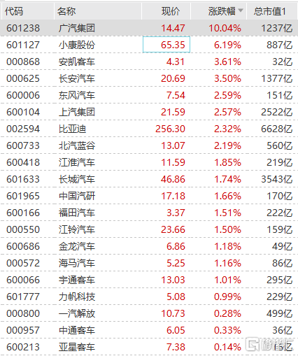 汽车板块午后大幅走强,广汽集团涨停封板,小康股份涨超6%,长安汽车、安凯汽车、东风汽车、上汽集团等跟涨。