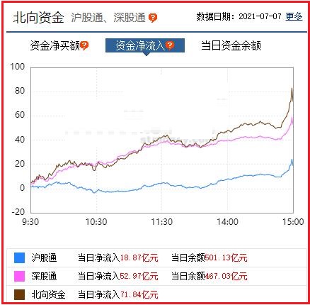 截至收盘: 北向资金净流入71.84亿元,其中沪股通资金净流入18.87亿元,深股通资金净流入52.97亿元