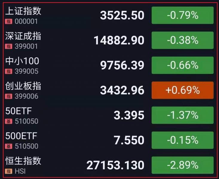 1.A股三大指数集体高开,锂电概念及稀土延续强势。盘中指数走势分化,半导体、光刻胶等芯片概念股掀涨停潮,军工股表现抢眼,碳中和、环保工程、消费电子短线走高;煤炭、石油、可燃冰等能源股大幅回调,CRO概念、医美、医疗器械等医药股走弱。午后,指数延续分化,白酒、银行股遭遇重挫,数字货币异动拉升,总体来看,市场情绪仍在缓慢修复,两市逾2900个股下跌,成交额连续第6个交易日突破1万亿元。截至收盘,上证指数跌0.79%,报3525.50点,深证成指跌0.38%,报14882.90点,创业板指涨0.69%,报3432.96点;