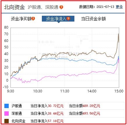 截至收盘: 北向资金净流入57.16亿元,其中沪股通资金净流入30.72亿元,深股通资金净流入26.44亿元。