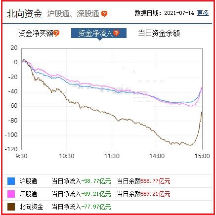截至收盘: 北向资金净流出77.97亿元,其中沪股通资金净流出38.77亿元,深股通资金净流出39.21亿元。