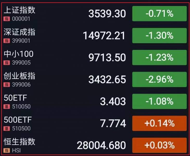 1.上周五三大指数低开,低开后窄幅震荡,创指跌逾1%,上证50跌幅居前,科创50高开低走,指数黄线在上白线在下,题材小票较为活跃,板块方面,保险、银行等权重板块回调,煤飞色舞行情再现,盐湖提锂概念股大幅拉升,华为鸿蒙、半导体芯片等异动,上海本地股高开低走。午后指数弱势盘整,沪指盘中短暂翻红,临近尾盘指数跳水,宁德时代(531.000 -37.00 -6.51%)(531.000, -37.00, -6.51%)等权重股重挫,拖累深成指失守15000点、创指跌幅扩大至3%,沪深两市成交额连续第十二个交易日突破1万亿元。板块方面,稀土永磁板块冲高回落,券商板块异动拉升,白酒板块午后回暖。总体而言,个股涨跌参半,赚钱效应一般。截至收盘,上证指数跌0.71%,报3539.30点,深证成指跌1.30%,报14972.21点,创业板指跌2.96%,报3432.65点;