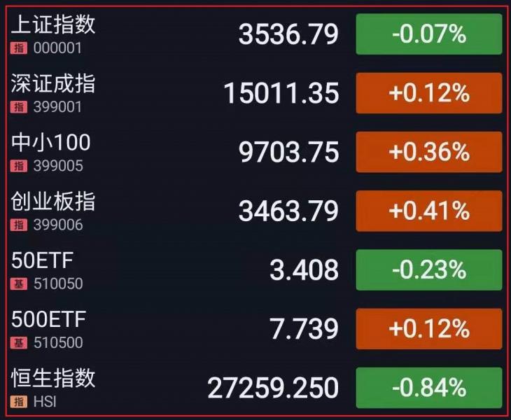 1.A股三大指数全线低开。盘中,沪指低位盘整,创指横盘震荡,生物制品、新冠检测、生物疫苗等板块集体走强,白酒、CRO概念、稀土板块活跃,医美、三胎概念短线拉升;大豆、玉米、种植等农业股重挫,石油、可燃冰等能源板块回调,盐湖提锂、数字货币等走弱。午后,指数逐步回暖,第三代半导体、集成电路等芯片概念股掀涨停潮,军工、锂电池概念持续升温,钢铁、航运概念表现低迷。总体来看,资金避险情绪依旧存在,两市逾2100个股下跌。截至收盘,上证指数跌0.07%,报3536.79点,深证成指涨0.12%,报15011.35点,创业板指涨0.41%,报3463.79点;
