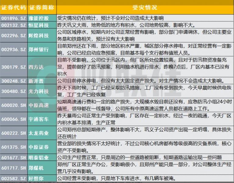 近日,受强降雨影响,河南郑州、巩义、登封等地遭遇极端强降水,郑州市区出现严重内涝,造成郑州市铁路、公路及民航交通受到严重影响。21日上午,财联社记者致电郑州地区近多家A股上市公司,关于郑州暴雨的影响,绝大部分公司表示影响不大。