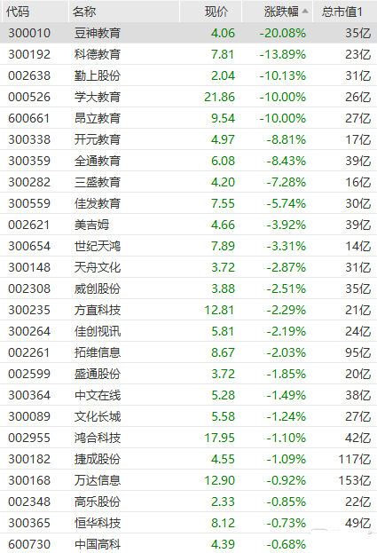 A股教育股开盘大跌,豆神教育、勤上股份、昂立教育等开盘跌停,科德教育跌超10%。中办国办“双减”政策落地:严禁超标超前培训,严禁非学科类培训机构从事学科类培训,严禁提供境外教育课程。严格执行未成年人保护法有关规定,校外培训机构不得占用国家法定节假日、休息日及寒暑假期组织学科类培训。多家涉及教育行业的A股上市公司称将产生重大影响。