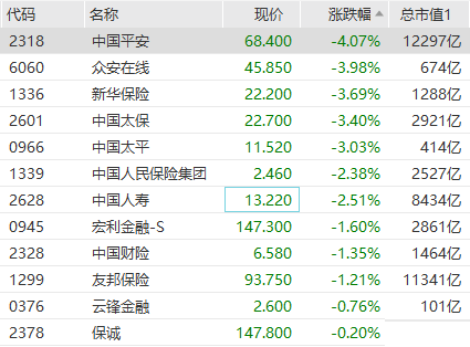 保险股全线下跌,中国人保跌超6%领跌,中国人寿、中国太保、新华保险跌超4%,中国平安跌近4%。港股方面,中国平安跌超4%,众安在线、新华保险、中国太保等跌超3%。从中国人保获悉,截至7月25日17时,公司共接到此次河南暴雨报案20.7万件,初步预计向保户支付的保险经济补偿将达到20多亿元,目前已到账保险赔款5000多万元,另有部分赔款作了预付。