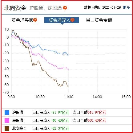截至午间收盘: 北向资金净流出62.37亿元,其中沪股通资金净流出21.97亿元,深股通资金净流出40.40亿元。
