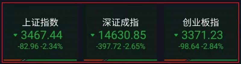 盘面上,国防军工、MINILED、特高压涨幅居前,饮料制造、白酒概念、医美概念跌幅前列。截至收盘,沪指跌2.34%,报收3467点;深成指跌2.65%,报收14925点;创业板指跌2.87%,报收3370点。