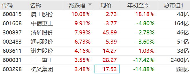 延续昨日强势,机械股今日再度集体走强。其中,厦工股份连续第二日涨停,中信重工涨停,三一重工继昨日涨停后今日盘中一度再涨近6%。