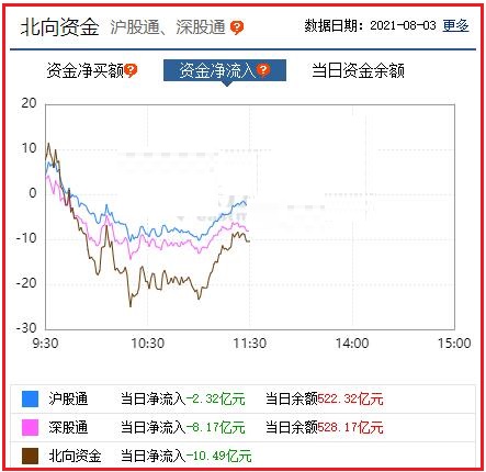 截至午间收盘: 北向资金净流出10.49亿元,其中沪股通资金净流出2.32亿元,深股通资金净流出8.17亿元。