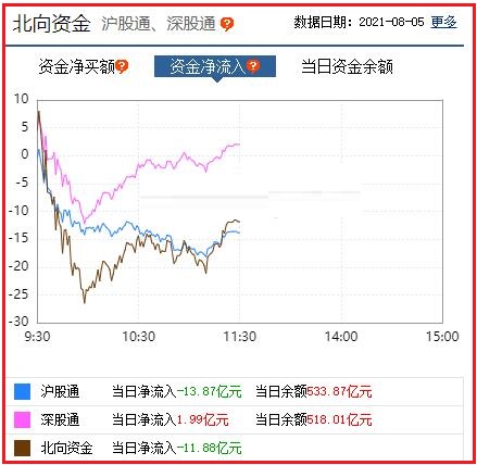 截至午间收盘: 北向资金净流出11.88亿元,其中沪股通资金净流出13.87亿元,深股通资金净流入1.99亿元。