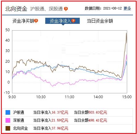截至收盘: 北向资金净流入37.96亿元,其中沪股通资金净流入16.37亿元,深股通资金净流入21.59亿元。