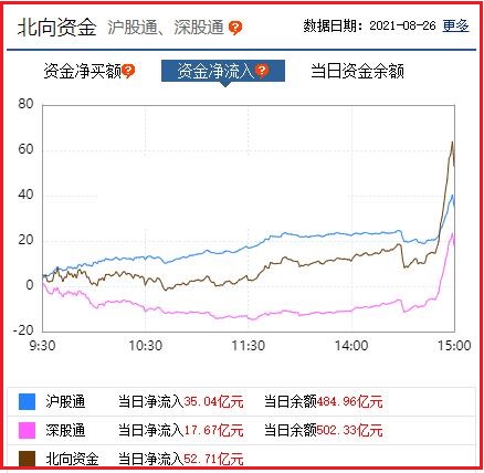 截至收盘: 北向资金净流入52.71亿元,其中沪股通资金净流入35.04亿元,深股通资金净流入17.67亿元。