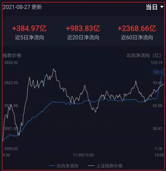 昨天北向资金虽然盘中表现看有分歧,但到收盘时却出现了较大的净流入。而今天早盘一开盘就继续大幅流入,今日净流入达到100亿。这反映出虽然有部分外资对于市场调整有一定的担心,但更多的外资仍然是积极看好中国股市未来。这符合北向资金长期的特点,只要北向资金是连续的、大幅度净流入的状态,中国股市就是健康的。