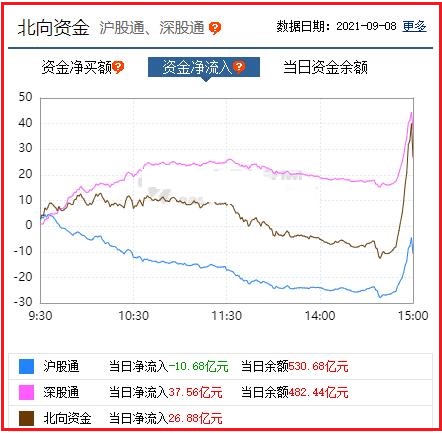 截至收盘: 北向资金净流入26.88亿元,其中沪股通资金净流出10.68亿元,深股通资金净流入37.56亿元。
