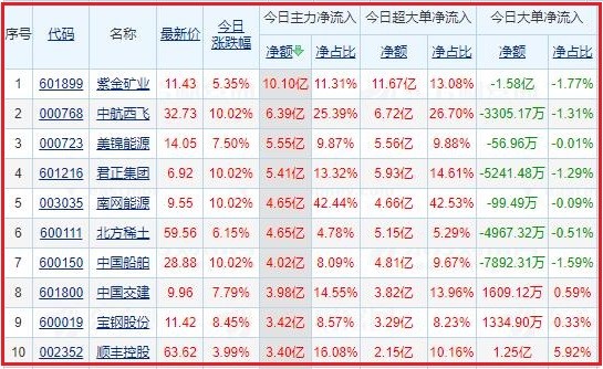 主要流向个股 : 附今日十大成交股