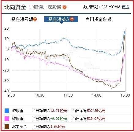 截至收盘: 北向资金净流入3.64亿元,其中沪股通资金净流入12.71亿元,深股通资金净流出9.07亿元。