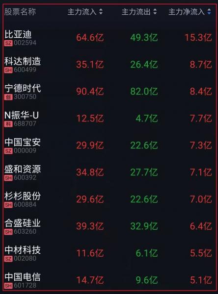 资金净流入十大人气热股: