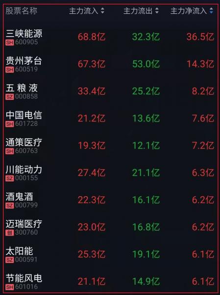 资金净流入十大人气热股:
