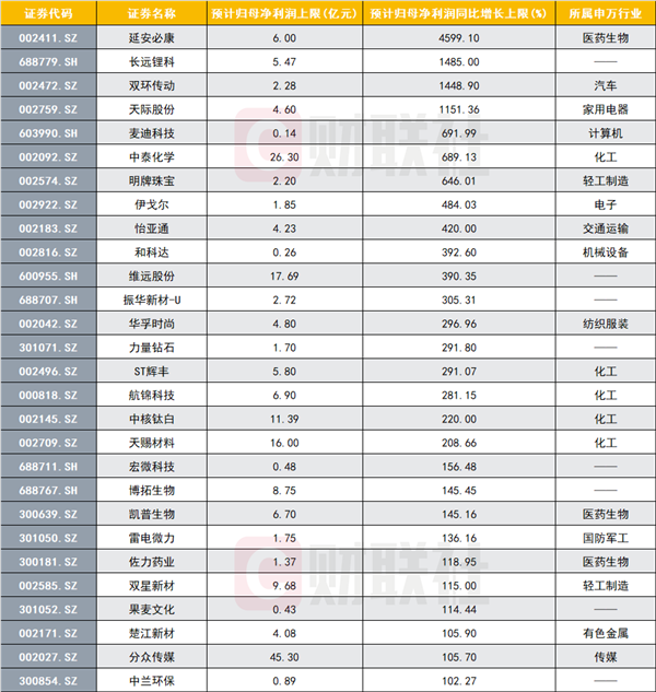 目前的三季报业绩“预增王”桂冠花落延安必康,8月26日延安必康公告称,预计2021年前三季度归母净利5.5亿元至6亿元,同比增长4207.51%-4599.10%。