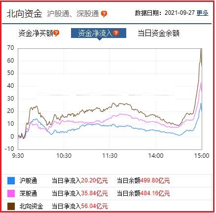 截至收盘: 北向资金净流入56.04亿元,其中沪股通资金净流入20.20亿元,深股通资金净流入35.84亿元。