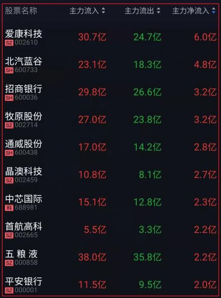 资金净流入十大人气热股: