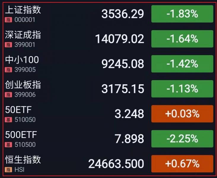 1.三大指数低开低走,沪深指数一度均跌超2%。板块方面,猪肉、养殖业板块拉升走强;昨日大涨的油气和电力板块集体大幅回调,盐湖提锂、鸿蒙概念等板块下挫。午后指数继续水下盘整。银行股逆势拉升;煤炭、钢铁、有色、化工、造纸等周期板块集体大跌。总体而言,市场情绪趋冷,个股呈现普跌态势,赚钱效应较差。截止收盘,沪指跌1.83%,深成指跌1.64%,创业板指跌1.13%;