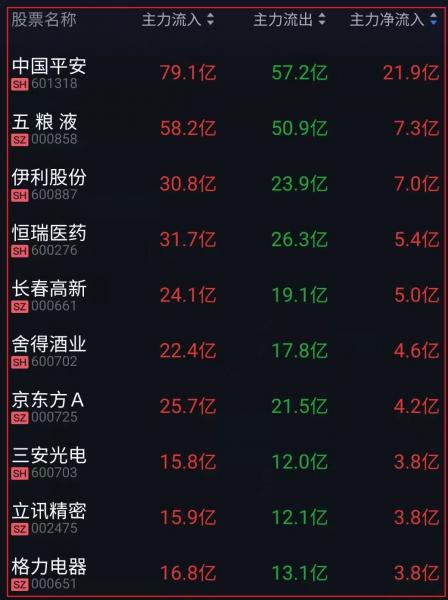 资金净流入十大人气热股: