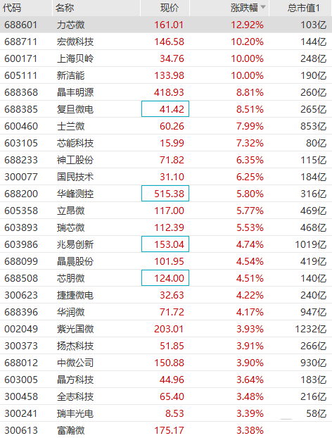 半导体板块继续拉升,上海贝岭、新洁能涨停,力芯微大涨近13%,士兰微涨近8%,立昂微、瑞芯微、兆易创新等纷纷跟涨。汇聚了芯片各细分产业链龙头的芯片ETF(159995)大涨超3%,成交额3.71亿元。国海证券认为国产替代是驱动国内半导体行业长期成长的主要因素,当前业绩兑现能力是决定后续板块走势的关键,科技创新周期+国产替代决定国内半导体板块长期投资价值,半导体板块仍将是未来3-5年国内科技投资主线。