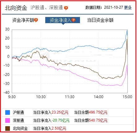 截至收盘: 北向资金净流入2.50亿元,其中沪股通资金净流入23.25亿元,深股通资金净流出20.75亿元。