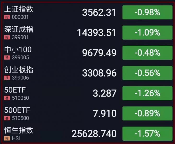 1.三大指数集体低开,随后持续走弱,盘中三大指数一度均跌超1%。板块方面,电力板块逆市大涨,氟化工、PVDF概念股走强;煤炭、钢铁、油气等周期板块全线下挫,白酒、食品、乳业等大消费板块走弱。指数午后继续弱势盘整,创指跌幅有所收窄。农业股短线拉升;国产软件、教育、半导体芯片股持续低迷。总体而言,市场情绪依旧低迷,个股呈现普跌格局,赚钱效应较差,两市成交额连续第四个交易日突破一万亿元。截止收盘,沪指跌0.98%,深成指跌1.09%,创业板指跌0.56%;