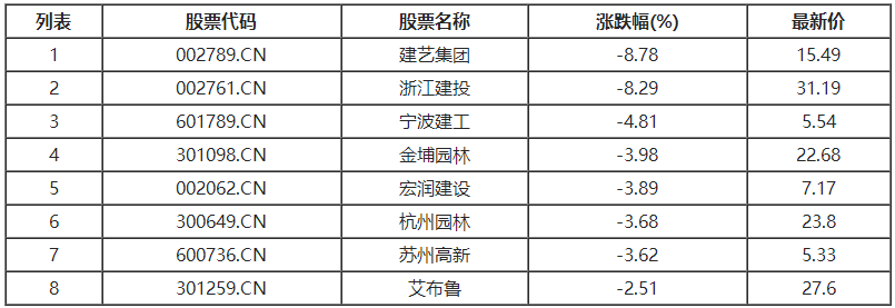 新型城镇化板块下挫,建艺集团(002789.CN)跌8.78%