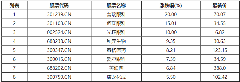 医疗服务板块拉升,普瑞眼科(301239.CN)涨20.0%