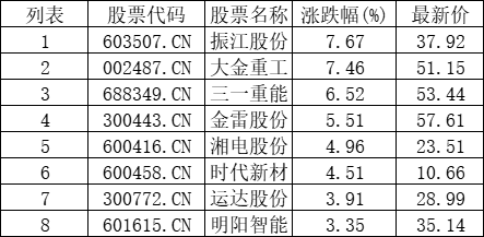 风电设备板块拉升,振江股份(603507.CN)涨7.67%