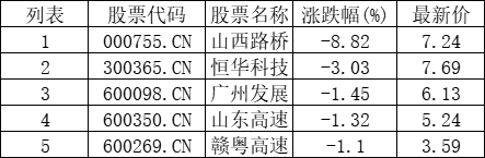 光伏高速公路板块下挫,山西路桥(000755.CN)跌8.82%