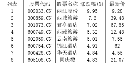 旅游酒店板块拉升,丽江股份(002033.CN)涨9.95%