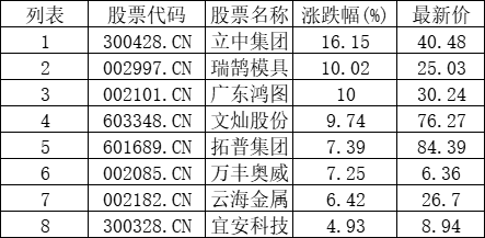 汽车一体化压铸板块拉升,立中集团(300428.CN)涨16.15%