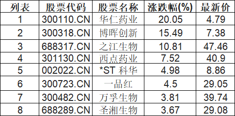 痘病毒防治板块拉升,华仁药业(300110.CN)涨20.05%