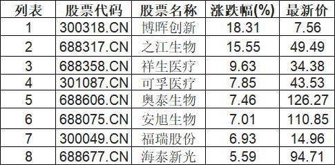 医疗器械板块拉升,博晖创新(300318.CN)涨18.31%