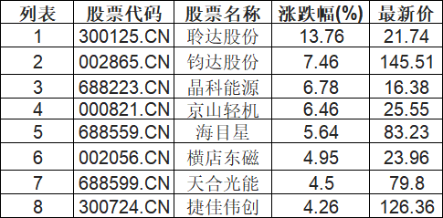 TOPCon电池板块拉升,聆达股份(300125.CN)涨13.76%