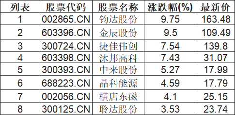 TOPCon电池板块拉升,钧达股份(002865.CN)涨9.75%