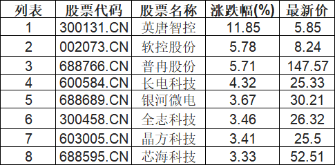 汽车芯片板块拉升,英唐智控(300131.CN)涨11.85%