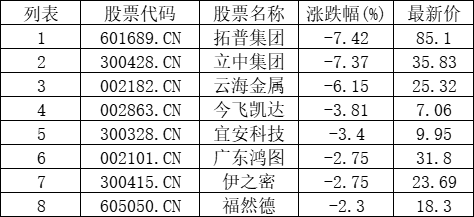 汽车一体化压铸板块下挫,拓普集团(601689.CN)跌7.42%